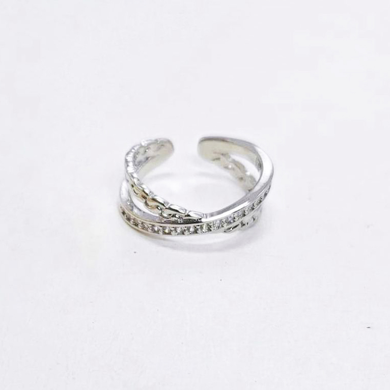 Кольцо безразмерное с фианитами размер 20*7мм цвет серебро в Москве